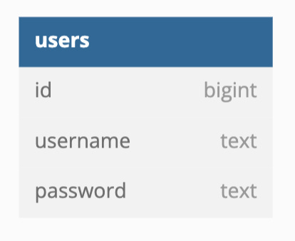 Let’s say, you have the following database table schema for your `users` table, where you have a column for the username and another column for the user’s password.