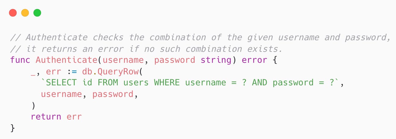 How would you go about checking a user's credentials when they try to authenticate (aka. log in, sign in)?
