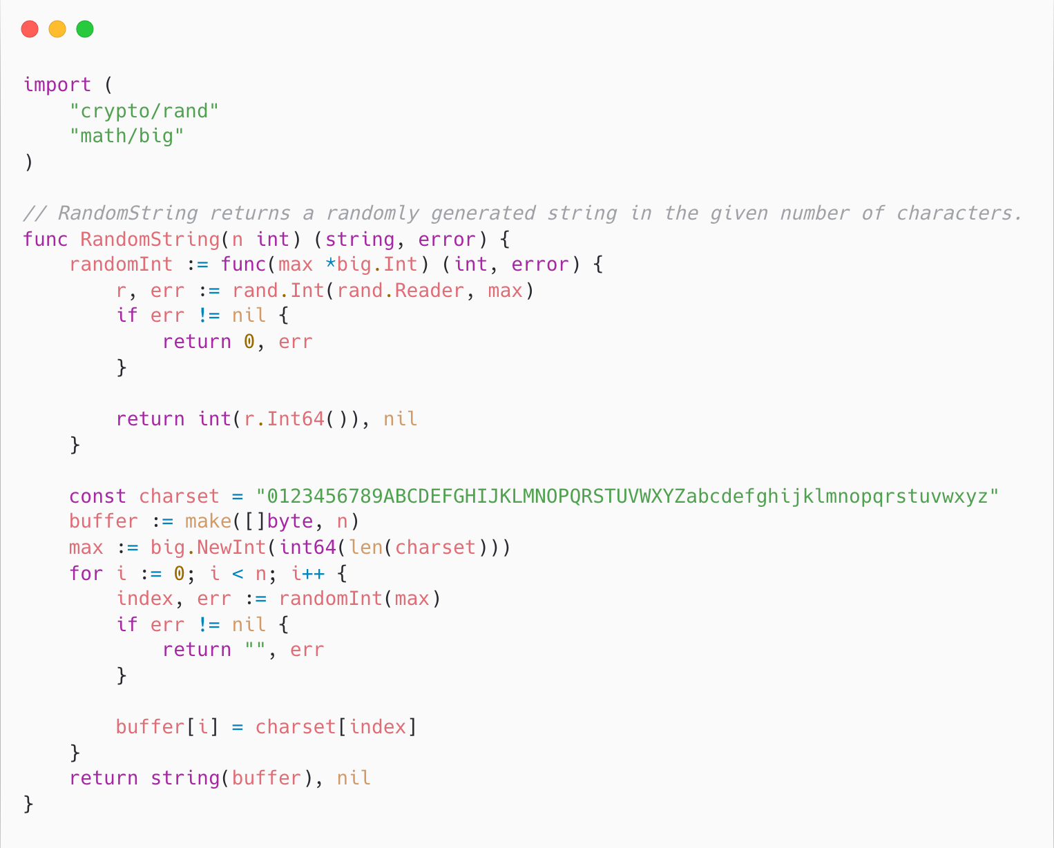 In the Go programming language, you could do it as follows (the code snippet is good to use as-is):